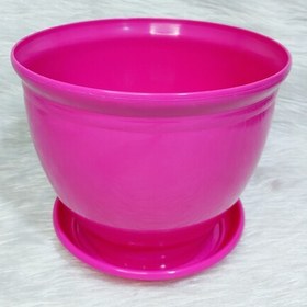 گلدان گرد دهانه ۱۷ سانتی متر همراه زیرگلدانی رنگ بندی متنوع ۱۶ رنگ تولید شده از مواد درجه ۱ ورنگبراق مقاوم دربرابر نور آفتاب
